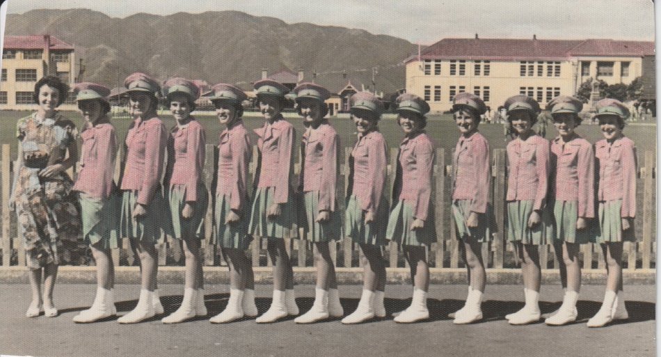 Otaki Tuis Marching Team at Hutt Park, Lower Hutt, 1950s