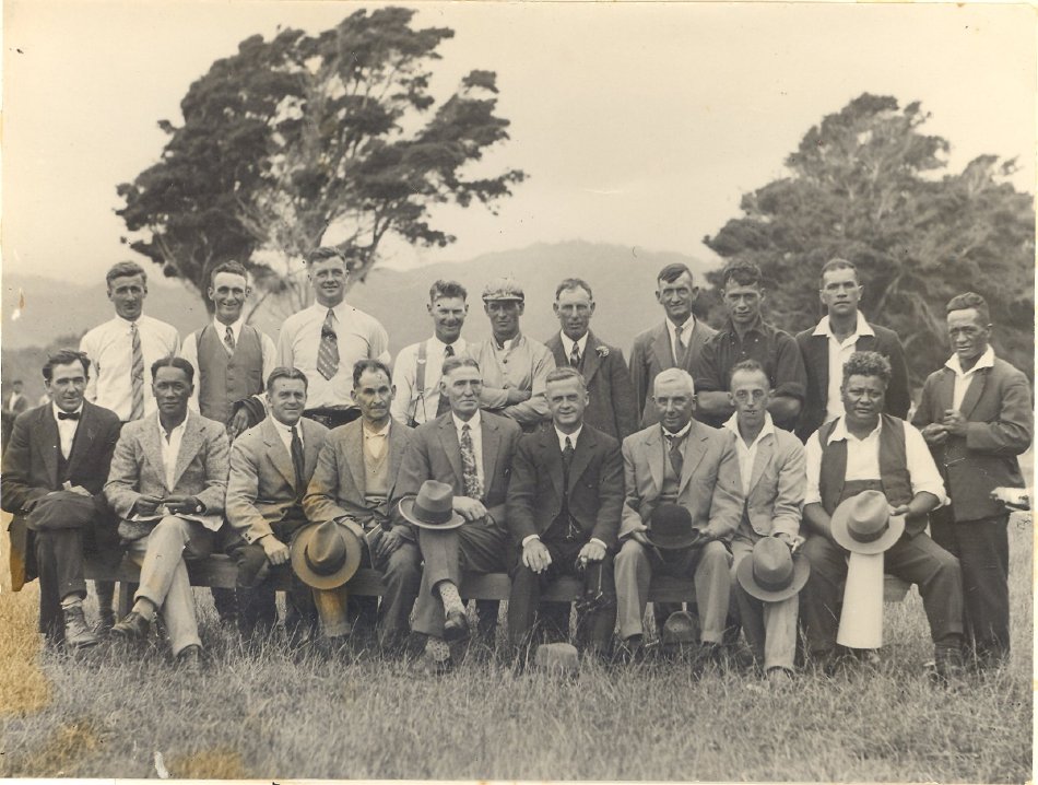 Back, L to R: Fred Brunell, Jack Taylor, Walter (Chappie) Bills, Ian Bradbury, Meta Johnson, Bill Reynolds, Ted Furze, Henry Wilson, George Grey,Raukawa (Bunny) Tahiwi.