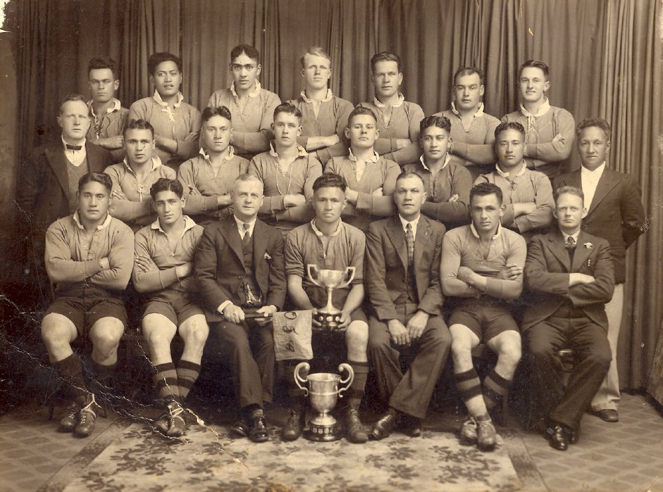 Front: T Henry, P Ropata, D Richards (President), M Hakaraia (Captain), G Gray (coach), Fred Jenkins, Eric Cook.
