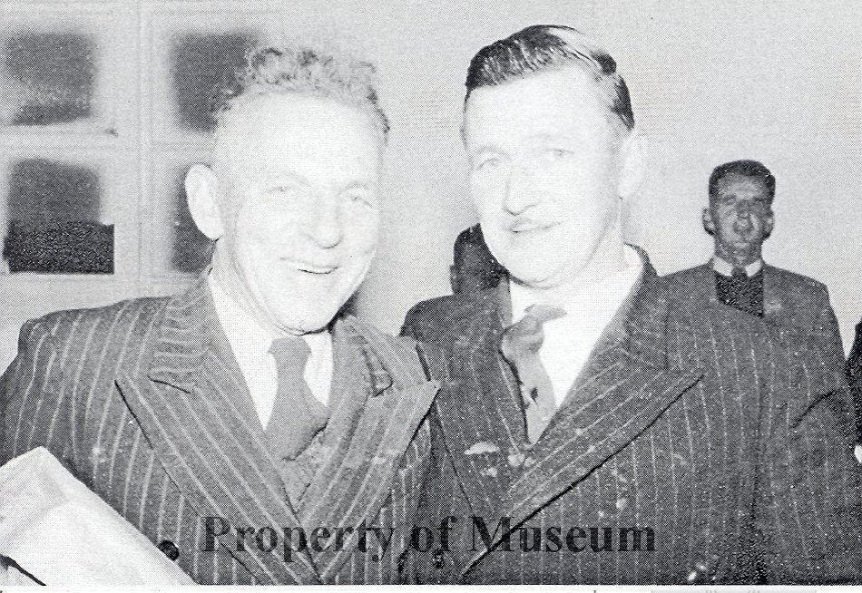 Arthur Lumley and Laurie Housiaux at their retirement function at the Sanatorium, 1956.