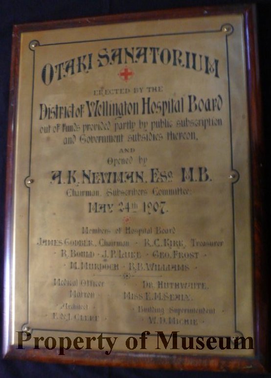 This brass plaque marked the opening of the Otaki Sanatorium building.