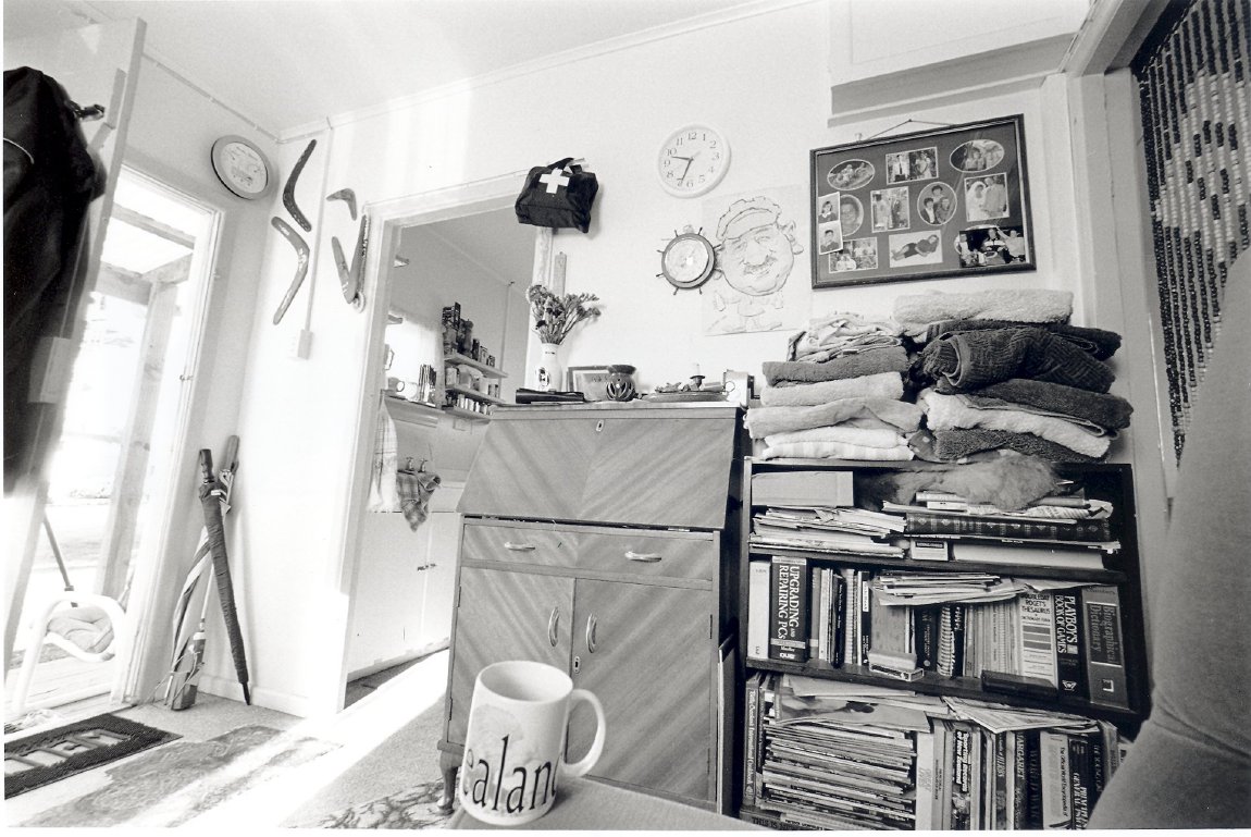 Well-outfitted interior of caretaker Alan Dries' caravan.