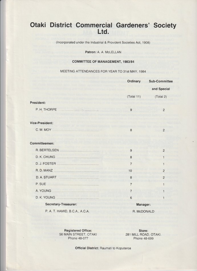 41st report and statement of accounts for the Otaki District Commercial Gardener' Society 1984