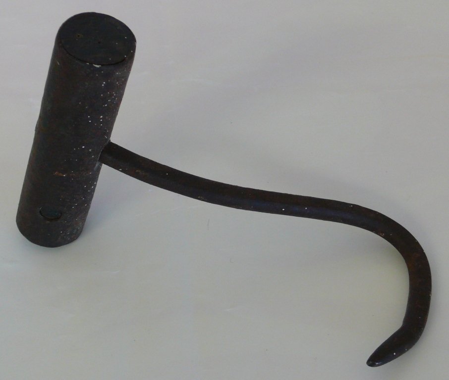 Sack hook used on market garden of Jack Hing & Co. for lifting sacks of potatoes. Handle 10 cm in length