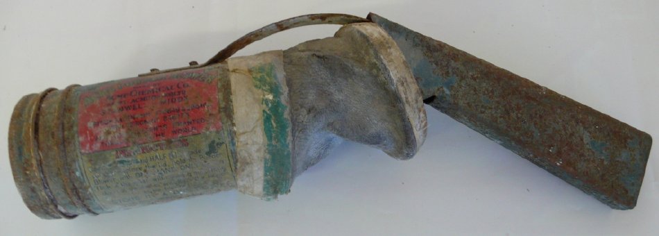 Metal with a canvas sleeve separating the powder container from a nozzle.