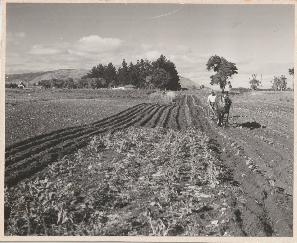 Part of Otaki Racecourse land leased to a Chinese gardener for market gardening during the war,1940.