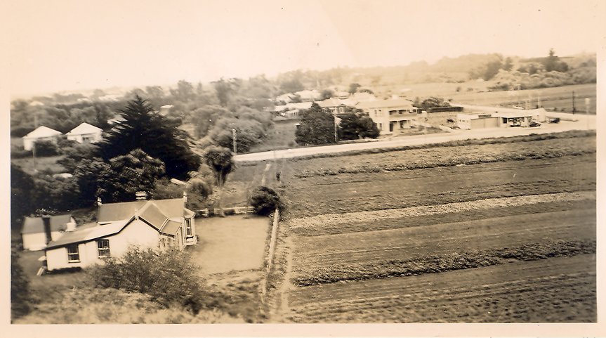 Intersection of SH1 and Mill Road, photo taken from Railway Windmill Tower (to pump water for railway) in the 1930s.