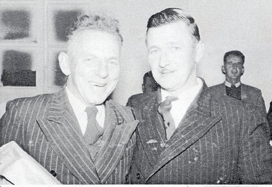 Arthur Lumley and Laurie Housiaux at their retirement function at the Sanatorium, 1956.