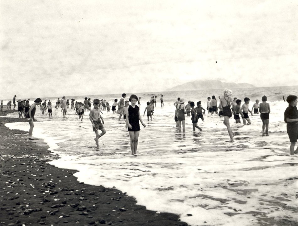Children swimming at Otaki beach, 1932.