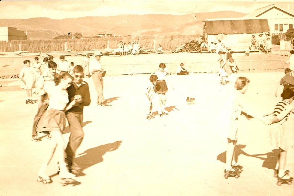 Otaki Skating Rink, 1950s, with unknown skaters.